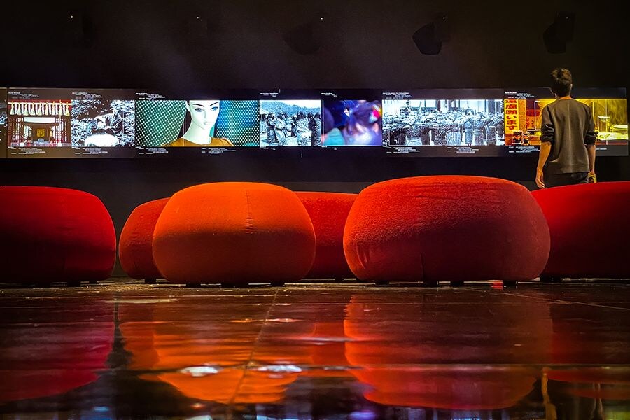 Presented across a line of six screens, the ten and a half minute presentation displays the BFI’s early cinematic views of Japan with new material gathered by The Light Surgeons from across Japan in 2020, which is then analysed in real time by custom AI software. This analysis is displayed in an animated infographic layer, inviting the viewer to contemplate how the understanding of such moments ‘frozen in time’ might be affected by the rise of new and emerging AI technology in the future.