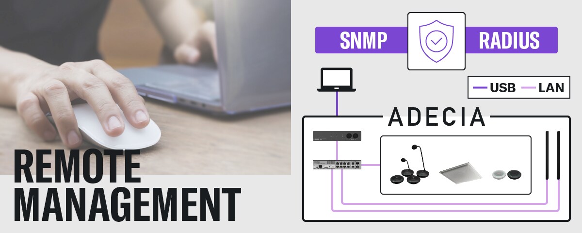 The latest update adds powerful tools that help IT teams stay in control. The new firmware strengthens ADECIA’s network and security features for RM-W, with support for SNMP (Simple Network Management Protocol) and IEEE 802.1X authentication, meaning administrators can remotely monitor battery levels, receive error notifications, and manage access securely. Authenticated network connection helps prevent data leaks and unauthorized connections, creating a secure and efficient conferencing environment. In combination with Yamaha’s SWR2311P-10G network switch, even larger or more complex configurations can be centrally managed via the RM-CR’s Web GUI. It’s all about giving users a worry-free and secure conferencing experience, while making life easier for IT and facilities teams behind the scenes.