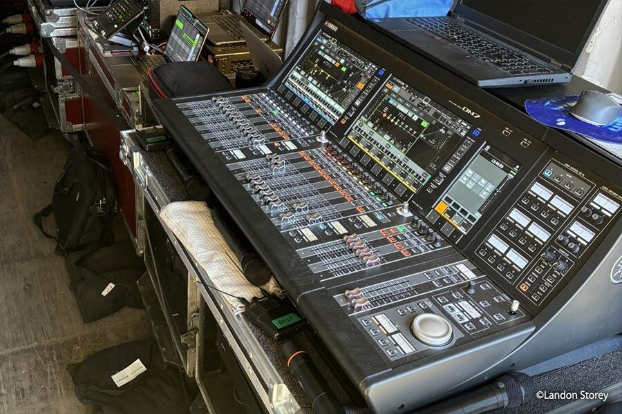 "There was no generator noise. It was just these huge generators, but they were just battery packs, so it was quiet," Landon explains. He mixed monitors from inside the storage container, relying on his technical skills and the features of the DM7 to deliver a high-quality performance.