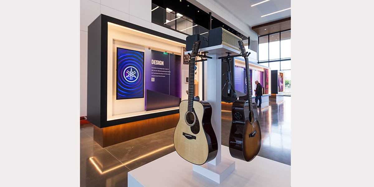 Upon arrival, visitors are immersed in the legacy of Yamaha, with intuitive wayfinding guiding them to a lobby that showcases instruments on pedestals, offering the opportunity to touch and play them, and a deconstructed guitar that serves as artwork on the wall. From the harmonious interplay of indoor and outdoor spaces to the melody-inspired design integration, the new campus reflects the values and vision that define the brand. This transformative milestone heralds the start of a new era of innovation and growth.