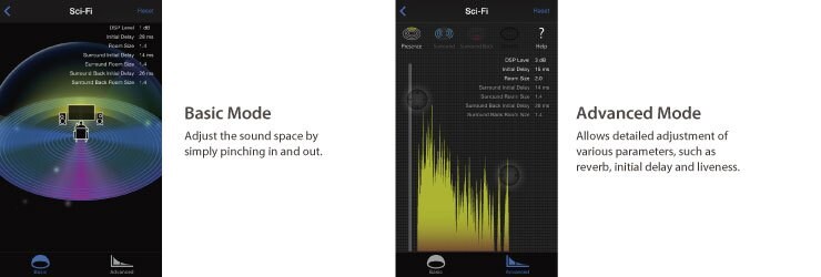Create sound fields at home. This AV receiver is equipped with a variety of sound programs that utilize original DSP technologies from Yamaha. These sound programs allow you to easily create sound fields like actual movie theaters or concert halls. It is now possible to use the AV Controller App to adjust the DSP parameters of your favorite movie or music album.