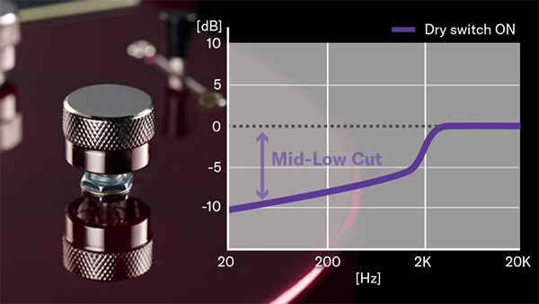 This produces a similar effect to coil tapping on a humbucker pickup, but unlike traditional coil tapping, it works with all types of pickups. It also eliminates noise and minimizes the volume difference between the on and off states. This feature is particularly effective when switching between solo and backing, or in high-volume live performance settings.