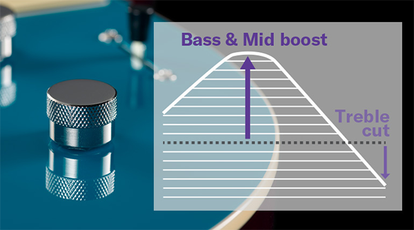 By incorporating a passive circuit based on transformer technology into the electronics, this design achieves a tone that focuses on the mid-to-low frequencies.