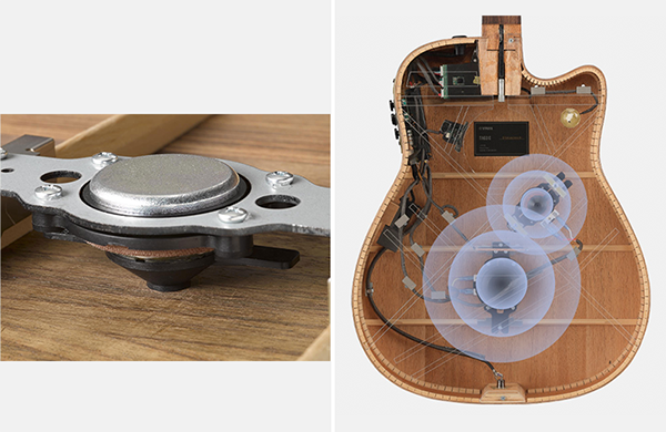 This pickup system was developed with the goal of faithfully reproducing the sound as experienced by acoustic guitar players.