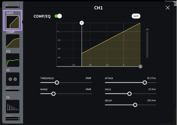 A gate can be used to reduce background noise and other unpleasant sounds that you don't want to output, and lets you deliver distraction-free sound.