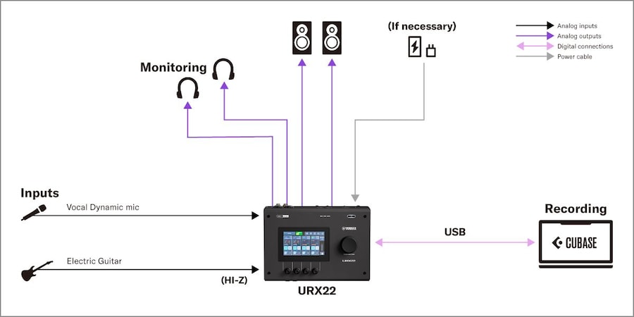 The audio is sent via USB to a computer, allowing high-quality recording in Cubase with minimal setup.