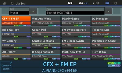 LIVE SETS let you easily organize your sounds, then access them during live shows. Each LIVE SET slot box can be used to call up a Performance. A Performance can be made up of one Part, or as many as sixteen Parts. And each Part can be a complete instrument sound on its own made from either a multi-sampled AWM2 program, or an FM-X synth program.