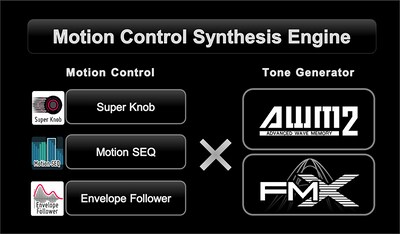 Motion Control is a powerful method of real-time expression and automation, allowing you to simultaneously change multiple parameters assigned to a sound. For example, a single control can increase filter cutoff frequency, decrease the amount of an effect, change the output of an FM operator and change pan positioning – all at the same time. Motion Control brings the sophistication of music production automation to realtime live performance.
