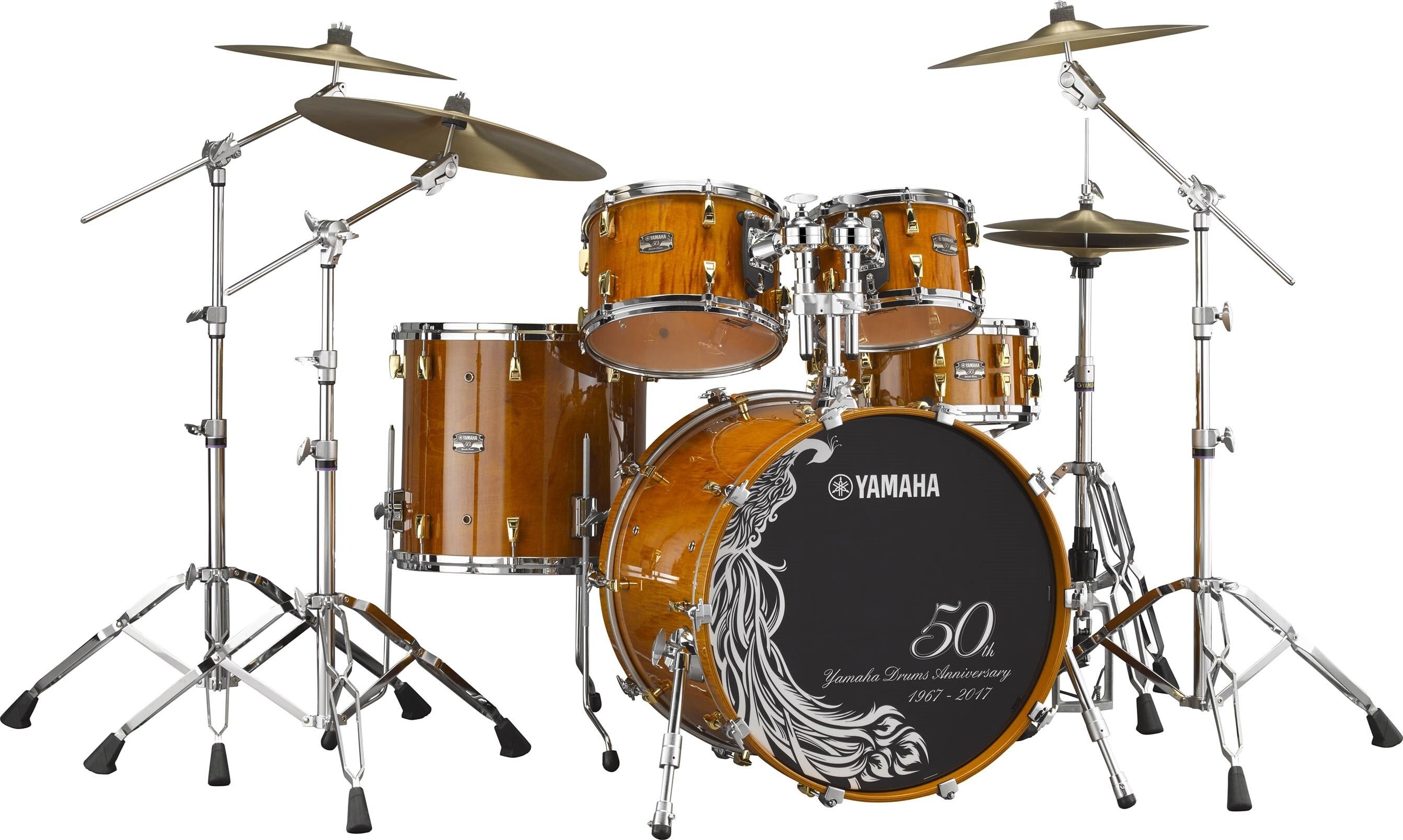 Based on Yamaha's renowned Absolute Hybrid Maple kit, the 50th anniversary model features shells with outer plies made from two varieties of beautiful exotic wood, and gold hook lugs that recall the revered Maple Custom set of yesteryear. Specially processed badges and front heads add to the luxurious feel of this limited release of fifty unique, five-piece kits.