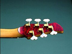 White pearloid peg heads aid in balancing the super long scale neck while adding great looks.