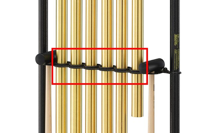 Elliptical guide plate holes minimize the possibility of contact between the guide plate and chime tubes after they are struck, achieving maximum sustain. The YHCS7006 also provides sufficient height for longer special-order chime tubes (YCHT7049A, YCHT7050A#, and YCHT7051B). Holes are provided on either side of the guide plate for convenient chime mallet storage.