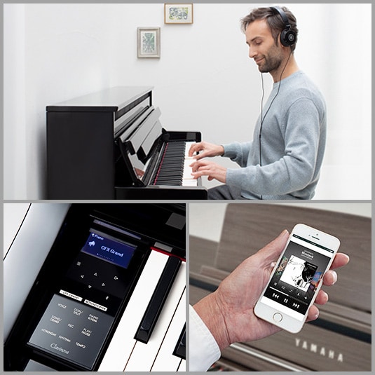 Clavinova pianos feature a wealth of preset lesson songs to aid practice and rhythms to add color to your playing, and can also connect to the Smart Pianist app. Also, Bluetooth® audio makes it easy to play your music files through your Clavinova piano. Clavinova pianos are loaded with fun-enhancing features only digital pianos can deliver.