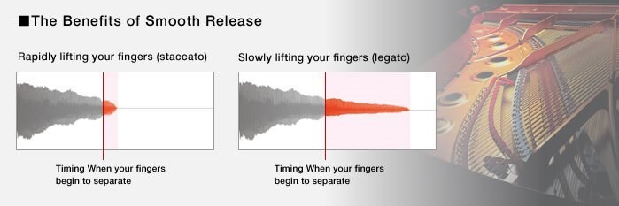 It features a new Smooth Release function which can express sound with great clarity, and clearly enunciate staccato notes with the sound of lingering resonance heard when gently lifting your fingers from the keys. It succeeds in capturing the essence of a piano performance to create grand piano-like, richly expressive experiences.