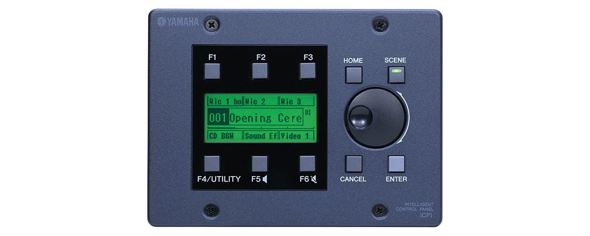 The ICP1 intelligent control panel features controls virtually identical to those on the DME64N/DME24N front panels, giving operators remote control capabilities for both DMEs. It offers unmatched ease of use thanks to a large, easy-to-read backlit LCD display that shows names for scenes and function keys in 5 languages - Japanese, English, French, German and Spanish. The 6 function keys appearing at the top and bottom of the LCD screen can be assigned to most parameters for easy remote control access. Up to 4 sets of function key assignments are available for a total of 24 parameters. Users can switch assignment sets by pressing the HOME key. A single function key can be used for simultaneous multiple parameter control by defining parameter links. Function keys are defined using the DME Designer software.